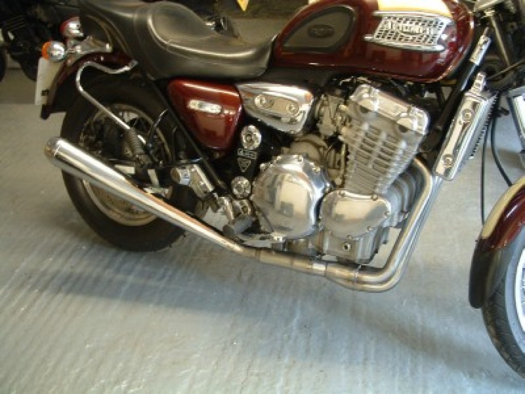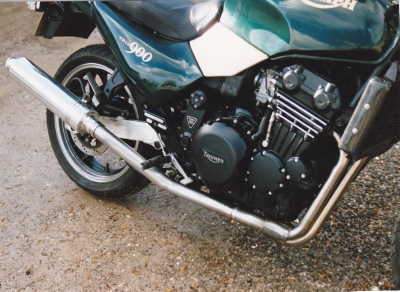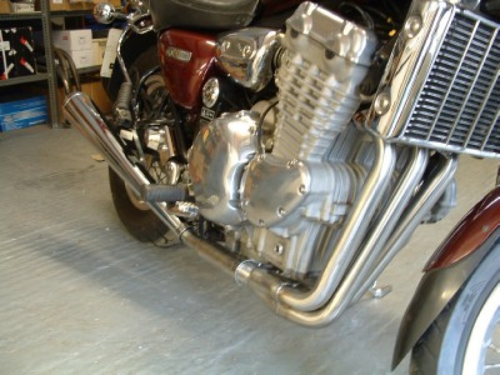 Stainless steel 3:1 down pipes to form the basis of a 3:1 system on all early 3 cylinder carburettor models. You can choose from the selection of intermediate/mid exhaust sections available see product code EX082 or have your own designs made locally. Examples of systems on bikes are shown in the gallery pictures.