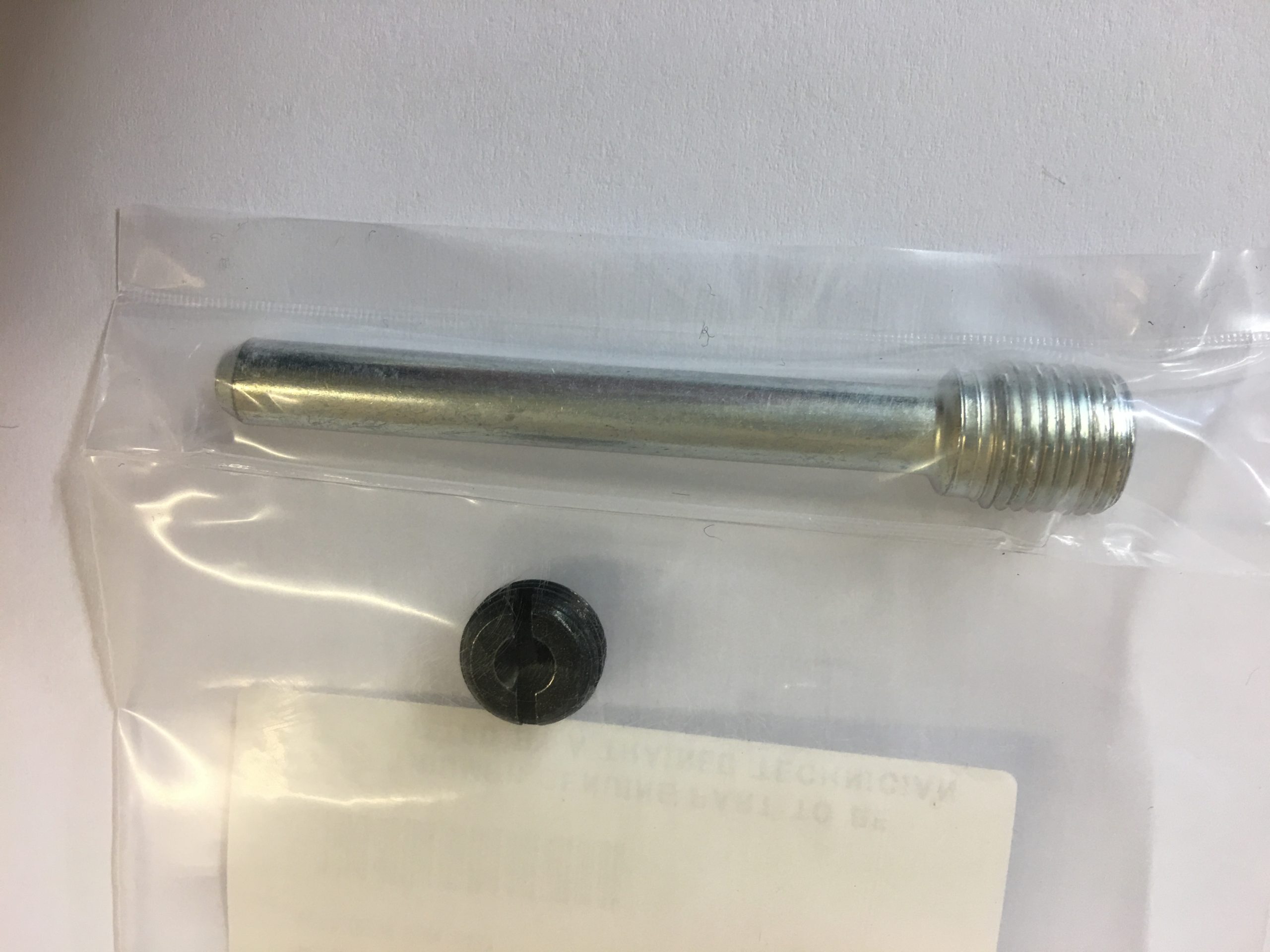 Screw cover and genuine Nissin brake pad pin for Thunderbird 900, 955 Tiger and Bonneville range. Approximately 59mm long. After removing the shallow screw, the pad pin can be unscrewed to change the brake pads. Kit contains enough for x 1 caliper.