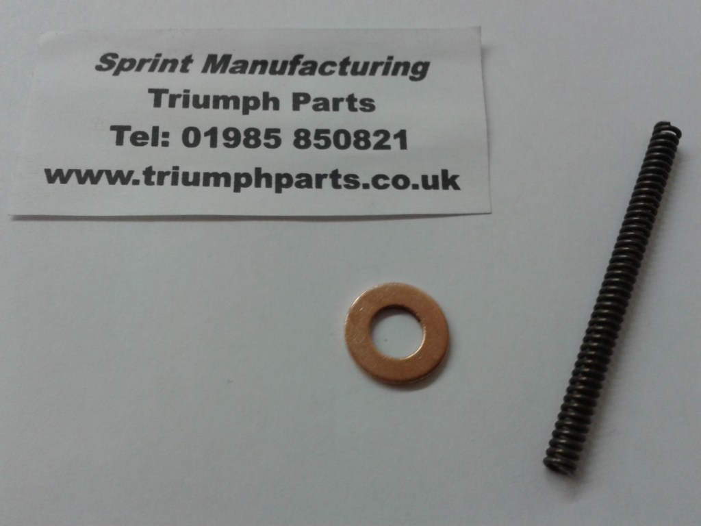 New Replacement Cam Chain Tensioner Spring complete with copper sealing washer for use in all Silver Coloured 675 cam chain tensioner housings.
