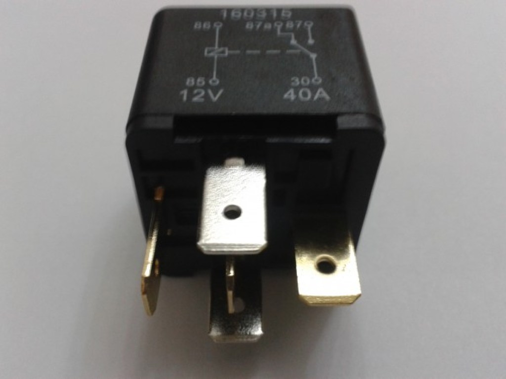Uprated 40A changeover relay used on starting to switch the lights off. These fail often when the ignition is turned on, the starter motor works without pressing the starter button. On many models this is mounted with the terminals facing upwards and any even small amounts of water from washing with a hose can find its way to the coil inside and cause it to fail. Cover/protect the terminal area.
