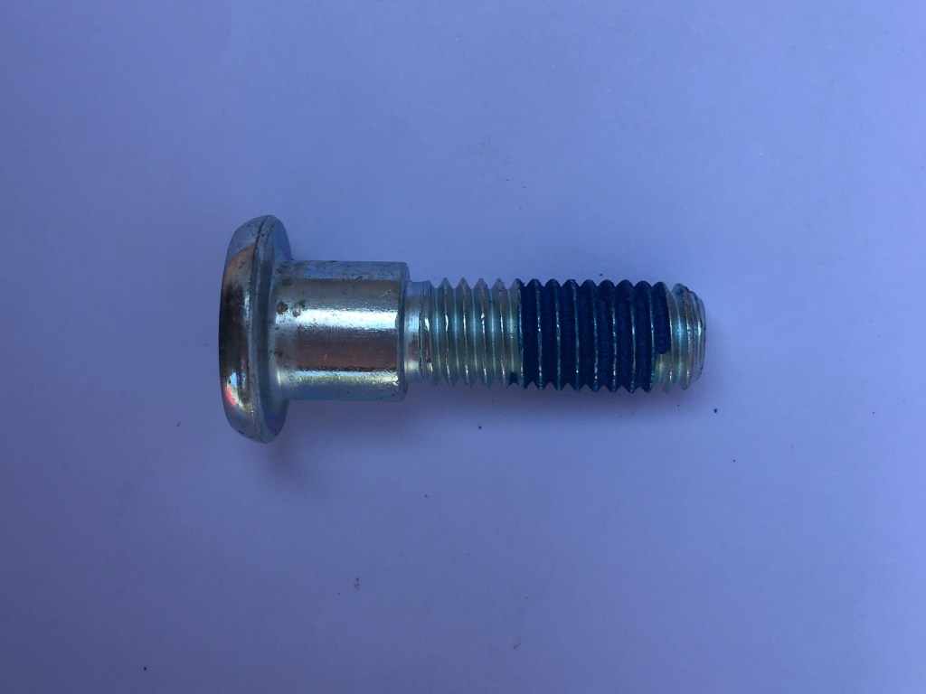 Replacement plated steel disc bolt. 6 mm hex key (Allen key) size. Length 29 mm from underside of the bolt head. Overall length 33 mm. Shoulder is 9.5 mm long and 9.9 mm diameter.