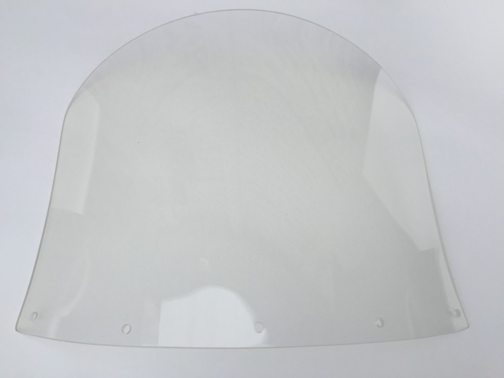 Most popular Avon handlebar fairing screen, 5 hole fitting screwed on the front/outside of the fairing in a recess. Curved measurement 17 1/2″ across screen where fitted to fairing. 13 3/4″.