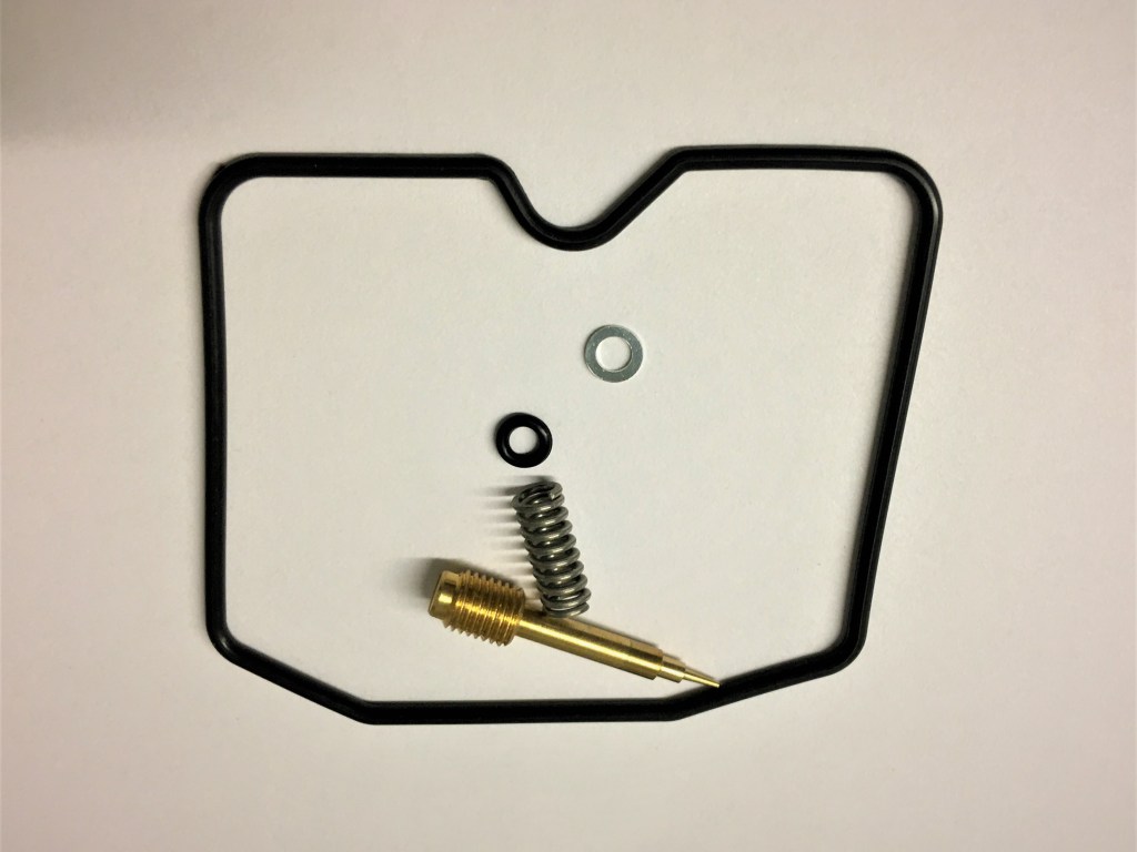 Keihin rebuild kit with Viton float chamber seal and pilot air screw assembly.
