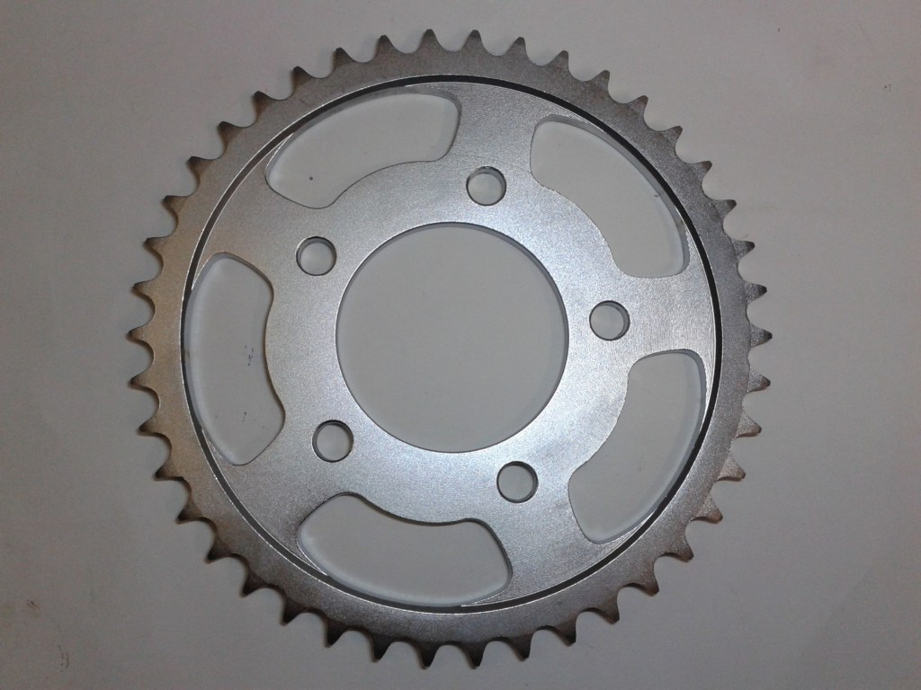 Rear sprockets in 40, 42, 43, 45, 46 or 48 teeth to fit all carburettor 3 and 4 cylinder models as well as all wire wheel 955 Tiger models. Please state size when ordering. (530 chain size)