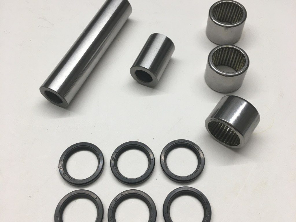 In StockSuspension drag link repair kit, hardened sleeves x 2, fully complement needle roller bearings x 3 and seals x 6. Fits: Trophy 1215, Trophy 1215 SE